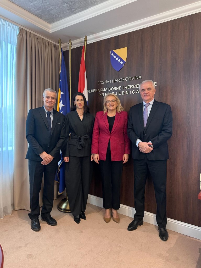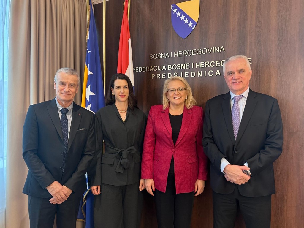 Predsjednica Federacije Bosne i Hercegovine Lidija Bradara primila je danas predstavnike Federalne uprave za geodetske i imovinsko-pravne poslove i predstavnike geodetskih društava u Federaciji BiH povodom organizacije I. Dana geodeta Federacije BiH, koji će se održati od 24. do 26. aprila 2026. godine u Neumu. Na sastanku su učestvovali Željko Obradović, direktor Federalne uprave za geodetske i imovinsko-pravne poslove, Sara Mihaljević, predsjednica Geodetskog društva Herceg-Bosne, te Ferid Durmišević, predsjednik Udruženja građana geodetske struke „Geodet“ iz Tuzle.