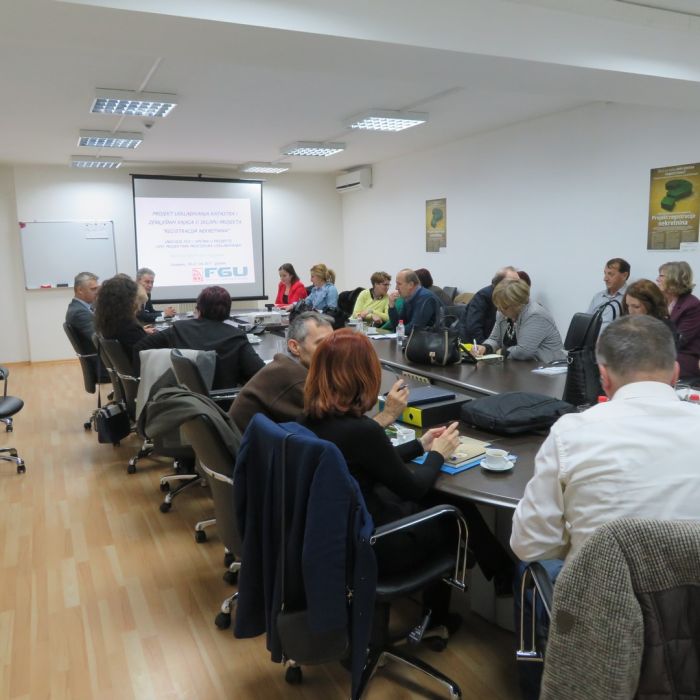 Na sastanku su prezentirani: sadržaj projektnih aktivnosti usklađivanja podataka katastra i zemljišnih knjiga, obveze koje stoje pred nadležnim općinskim sudovima i općinama/gradovima u pripremi i realizaciji projektnih aktivnosti, te primjeri najbolje prakse u postupanju općinskih sudova i općina/gradova u pripremi i realizaciji Projekta registracije nekretnina.