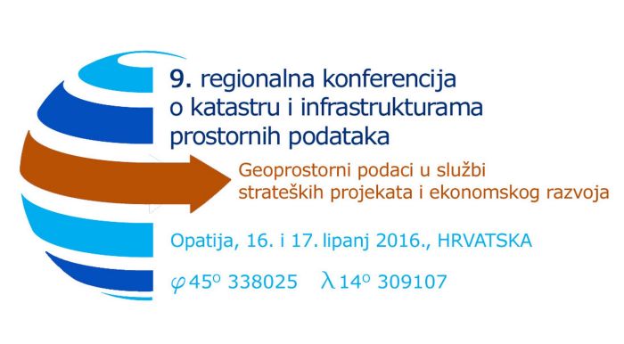 U Opatiji, Republika Hrvatska, je 16. i 17. lipnja 2016. godine održana 9. Regionalna konferencija o katastru i infrastrukturi prostornih informacija pod nazivom „Geoprostorni podaci u službi strateških projekata i ekonomskog razvoja“. Glavni pokrovitelj održavanja konferencije je Vlada Republike Hrvatske, a organizator i domaćin konferencije je bila Državna geodetska uprava Republike Hrvatske, uz podršku IMPULS projekta. Pozdravne govore na otvaranju konferencije su održali Peter Wasström, voditelj Odjela za međunarodnu suradnju Lantmäterieta, Švedska, Mirjana Čagalj, potpredsjednica Hrvatske gospodarske komore za graditeljstvo, promet i veze, Renata Duka, pomoćnica ministra pravosuđa, Milan Rezo, pomoćnik ministra graditeljstva i prostornog uređenja, te Danko Markovinović, ravnatelj Državne geodetske uprave, koji je i otvorio konferenciju.