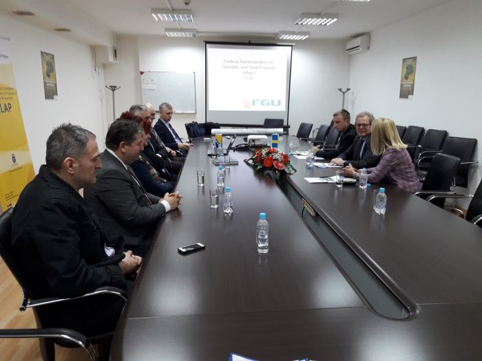 Koordinator projekta CILAP gosp. Denis Tabučić je prezentirao stanje realizacije projekta CILAP i upoznao veleposlanika i njegove suradnike s realizacijom aktivnosti u svim komponentama. Realizacija projekta je počela 2013. i trajat će do 2019. godine. Vrijednost projekta za BiH je oko 6 milijuna eura. Glavna aktivnost projekta je tehnička potpora Projektu registracije nekretnina – RERP, kojim se usuglašavaju podaci zemljišne knjige i katastra u urbanim prostorima Federacije Bosne i Hercegovine. Projektom CILAP se također daje potpora uspostavi adresnog registra, procijeni vrijednosti nekretnina, uspostavi digitalnog arhiva, gravimetrije i određivanju geoida za BiH.