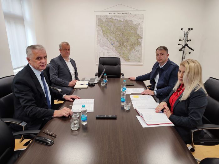 Sastanak predstavnika Federalne uprave za geodetske i imovinsko – pravne poslove i predstavnika Ministarstva graditeljstva, prostornog uređenja i zaštite okoliša Unsko-Sanske županije je održan u prostorijama uprave 17.5.2023. godine. Na sastanku su sudjelovali ravnatelj gosp. Željko Obradović, pomoćnik ravnatelja gosp. Sead Hadžić, te ministar gosp. Senad Dizdarić i pomoćnica ministra gđa Mirsada Mujagić – Pjanić.