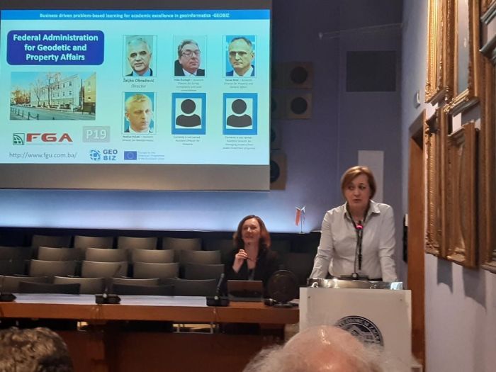 The project partners were presented during the second day of meeting, and since the Federal Geodetic Administration is one of the partners, Ms Slobodanka Kljucanin, expert advisor for cartography, held the presentation. The Federal Administration for Geodetic and Real Property Affairs is obliged to provide persons for the GEOBIZ Project Supervisory Board, in the term of supporting the organization of workshops, building cooperation with the academic sector and raising awareness about the importance of geo data.