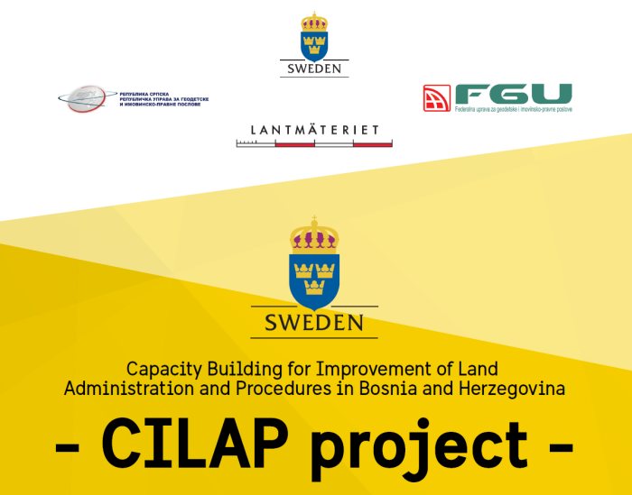 Projekt Izgradnje kapaciteta za unapređenje zemljišne administracije i procedura u Bosni i Hercegovini (CILAP) odlukom je Švedske agencije za međunarodni razvoj i suradnju – Sida/Veleposlanstva Švedske u Bosni i Hercegovini produžen do 31.12.2022. godine.