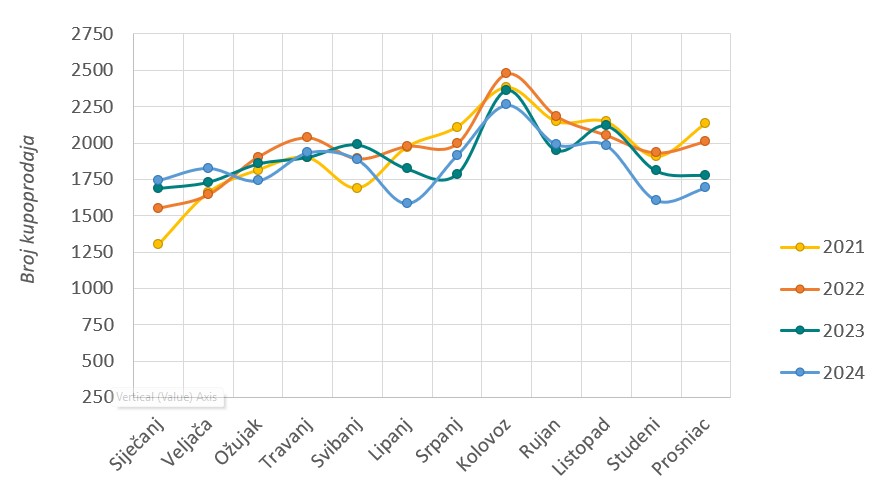 Usporedbom broja pregleda podataka sa javnog uvida i ostvarenih kupoprodaja u istom vremenskom periodu došlo se do zaključka da je najmanji broj prometa ostvaren u prosincu, a najmanji broj pregleda u listopadu. Tijekom 2024. godine zabilježeno je povećanje interesa javnosti za javnim uvidom Registra cijena nekretnina.